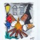 Bastidor de madera, 40cm x 50cm, forrado de lienzo. Pintura mixta: óleo y acuarela.